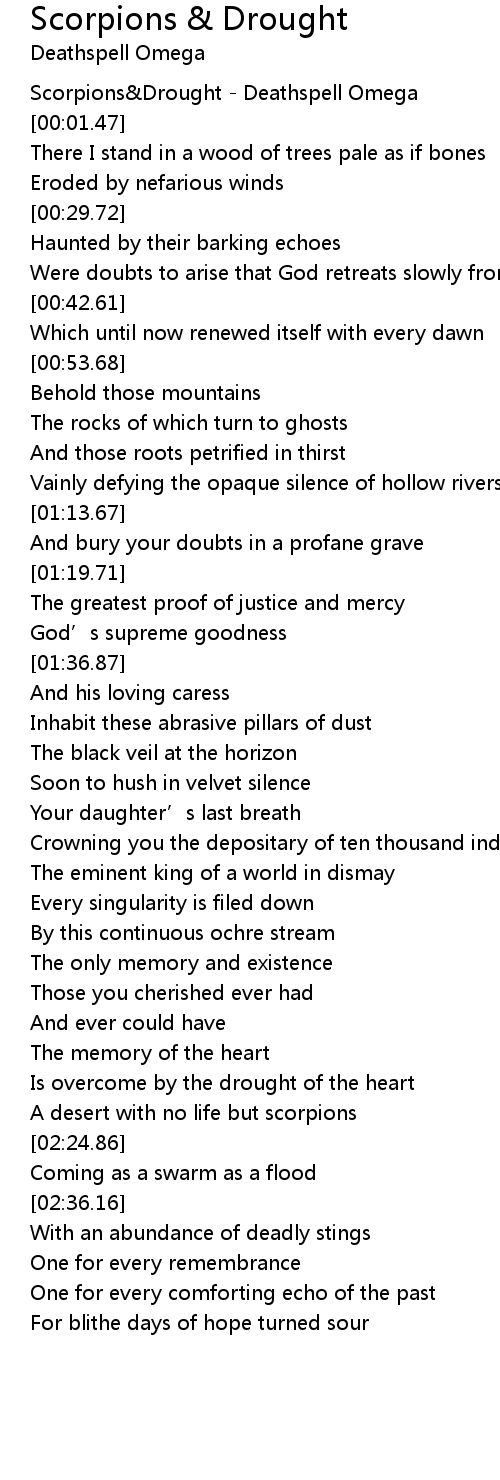 | [00:00.23] | Scorpions Drought Deathspell Omega |