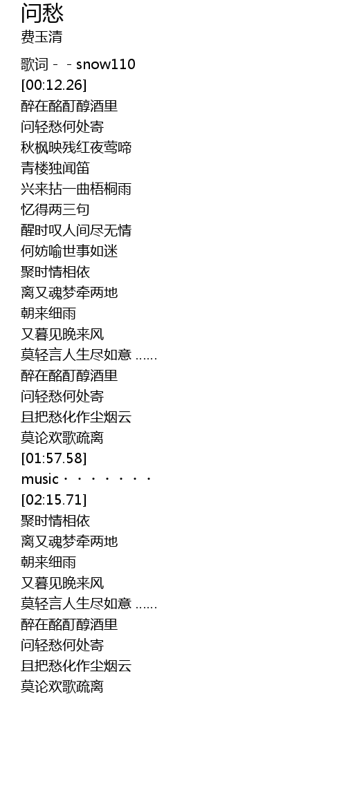| [01:40.35] | wèn qīng chóu hé chǔ jì |