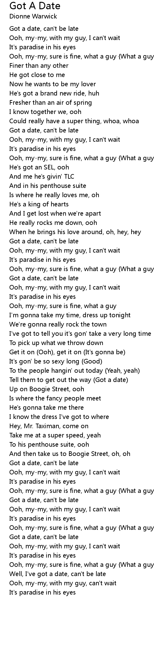 Ooh, my-my, with my guy, can't wait |