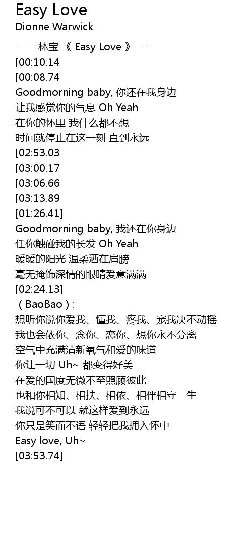 | [00:00.00] | -= 林宝 《 Easy Love 》=- |