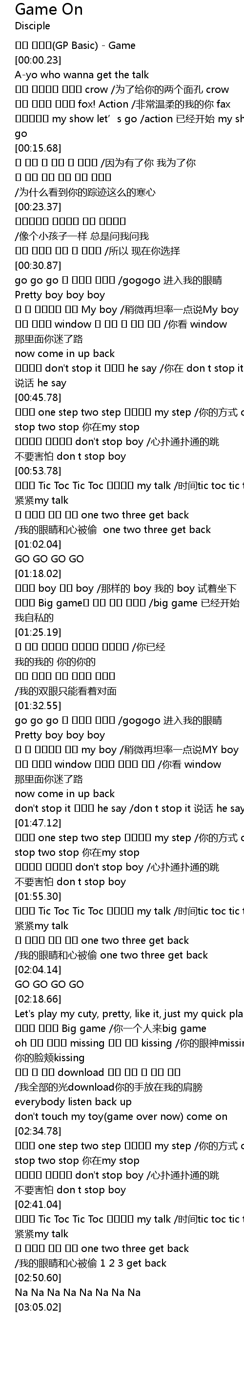 | [00:00.00] | 지피 베이직(GP Basic) - Game |