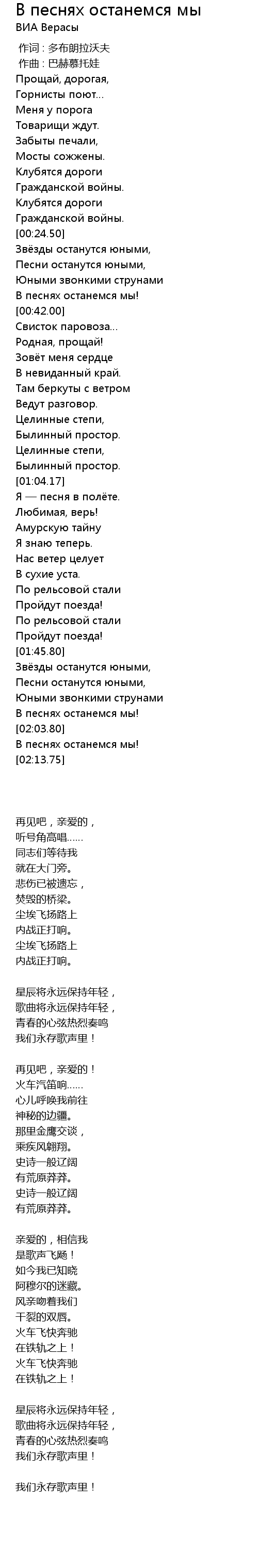 | [01:59.20] | В песнях останемся мы! |