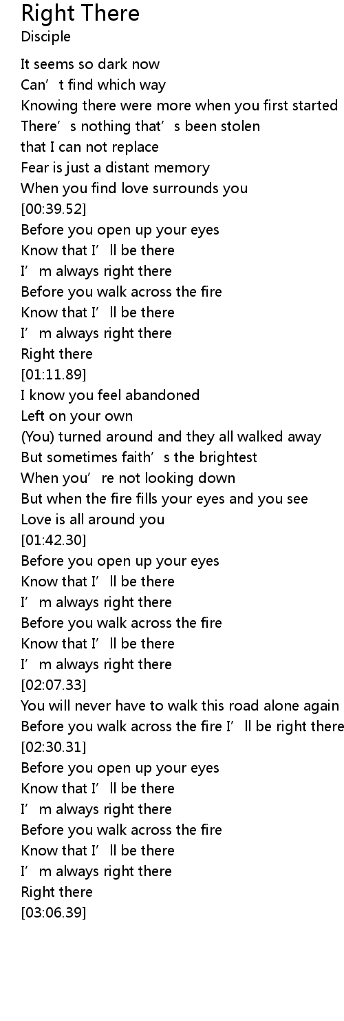 | [02:20.55] | Before you walk across the fire I’ll be right there |