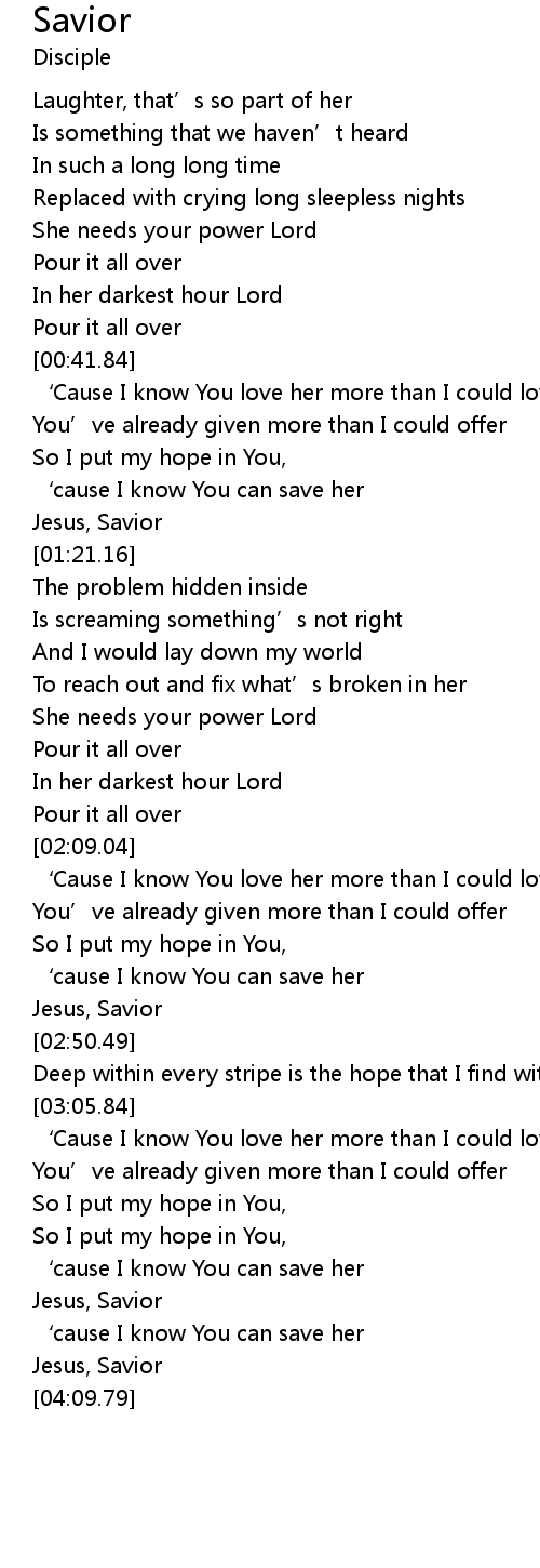 | [02:55.56] | Deep within every stripe is the hope that I find within You |