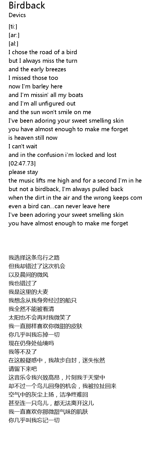 | [03:15.37] | but not a birdback, I' m always pulled back |