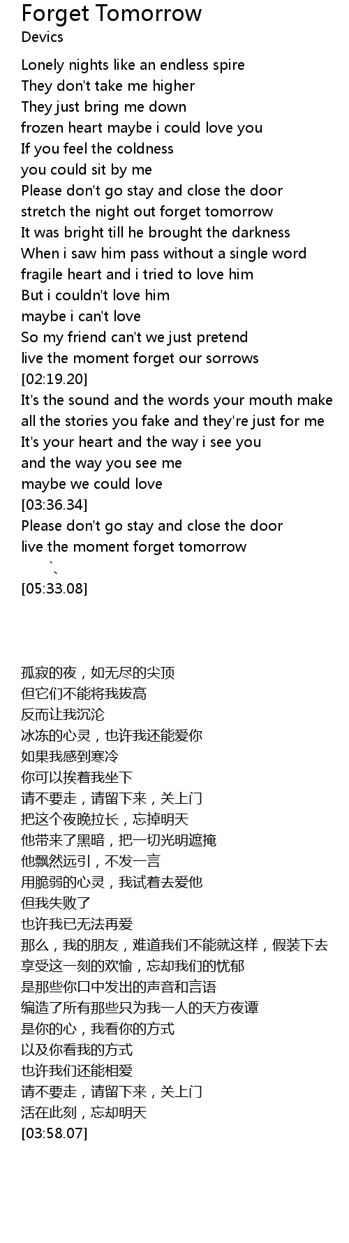 | 歌曲 | Forget Tomorrow |