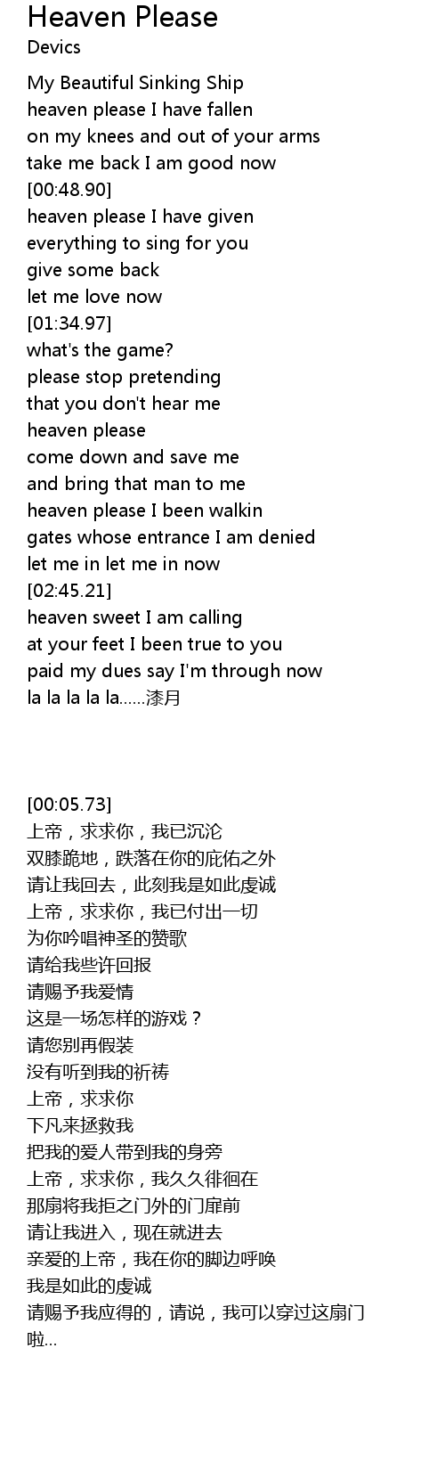 | [02:03.04] | heaven please |