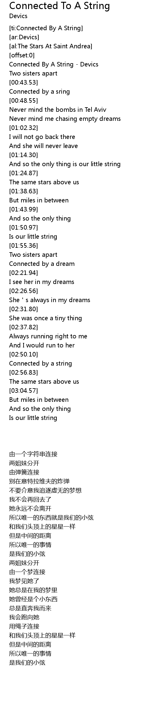 | [00:02.67] | Connected By A String - Devics |