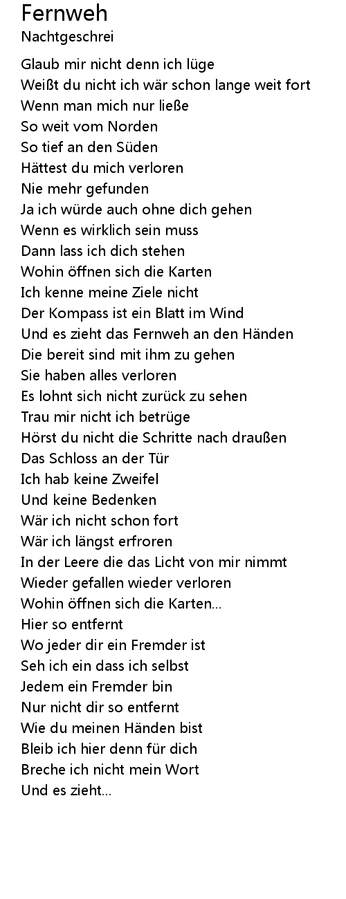 | Wei t du nicht ich w r schon lange weit fort | |