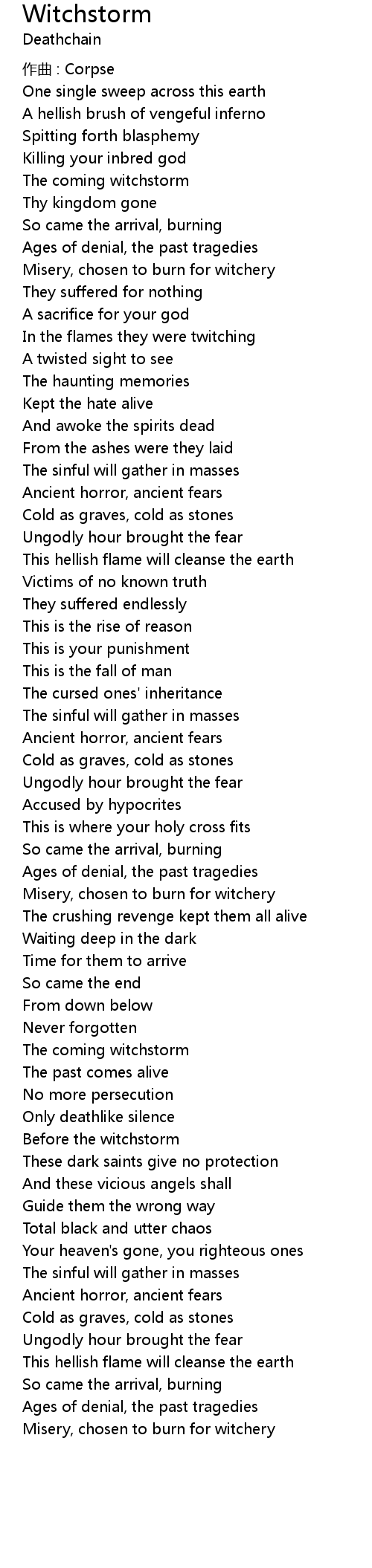| 歌曲 | Witchstorm |