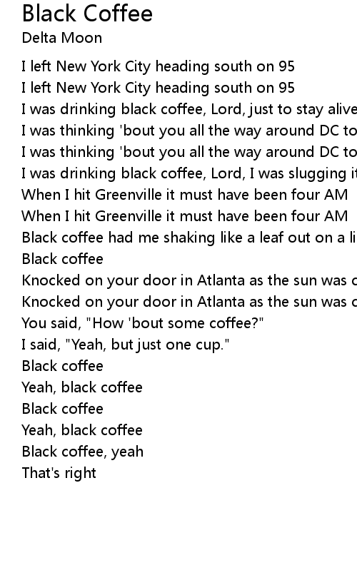 I was drinking black coffee, Lord, I was slugging it down |