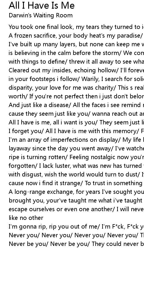 layaway since the day you went away/ I've watched myself decay, the |