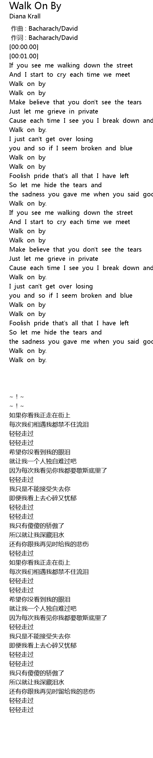 | [00:00.00] | 作曲 : Bacharach/David |