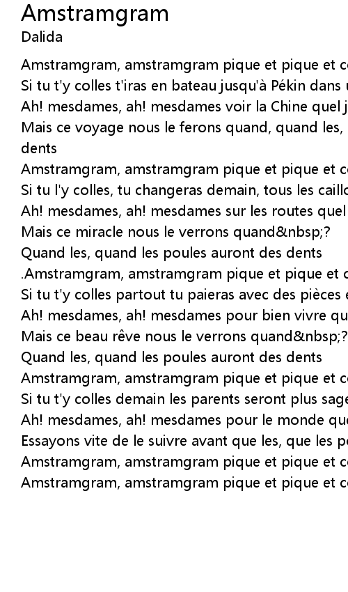 | Amstramgram, amstramgram pique et pique et cole gram... |