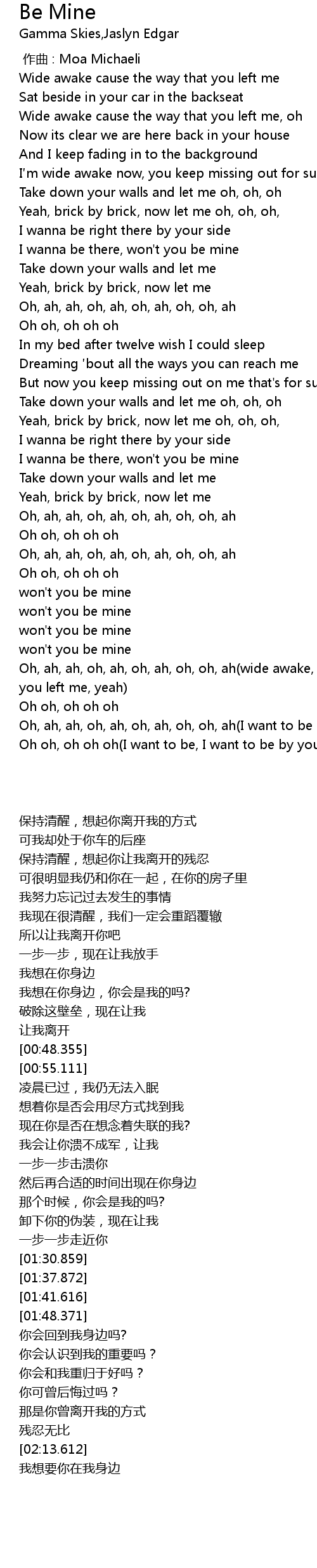| [00:39.612] | I wanna be there, won' t you be mine |
