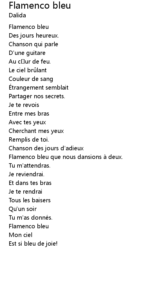 | Flamenco bleu que nous dansions a deux. | |