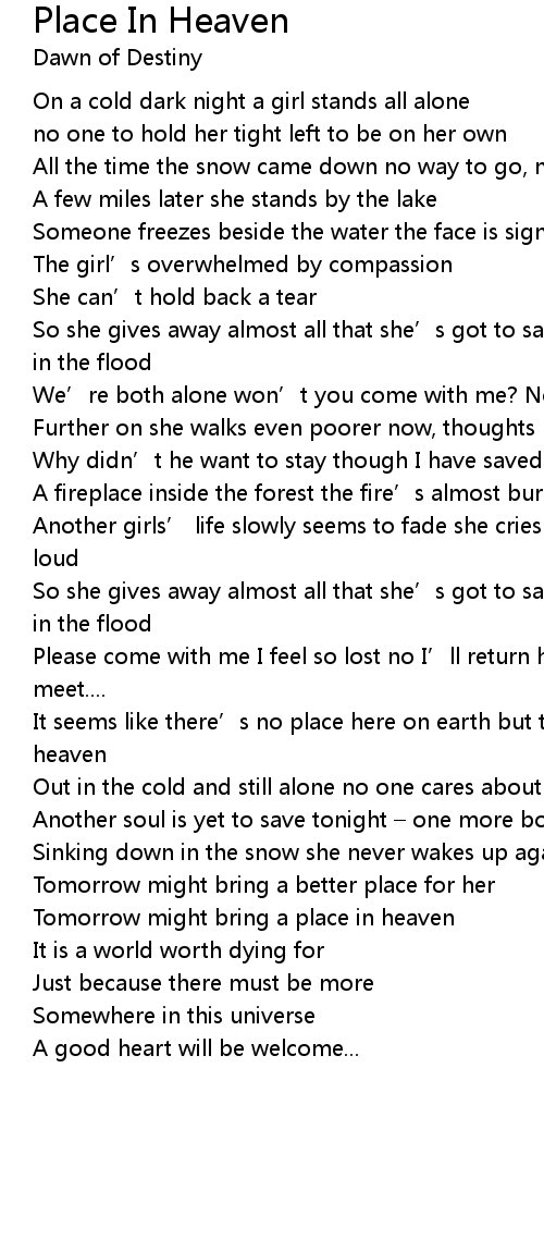 | It seems like there' s no place here on earth but there has to be a place in heaven | |