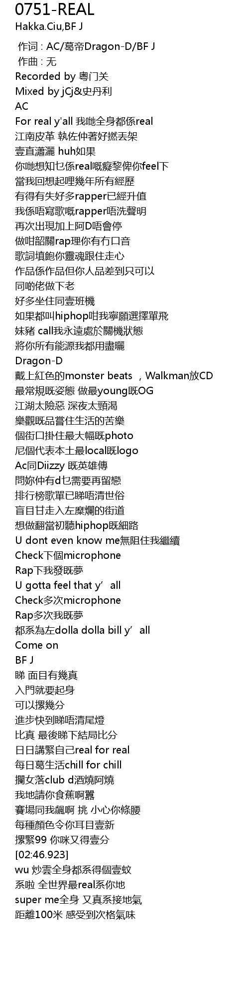 | [00:22.422] | For real y'all 我哋全身都係real |
