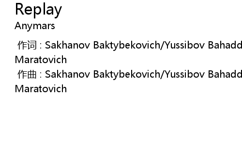 | [00:00.000] | 作词 : Sakhanov Baktybekovich/Yussibov Bahaddinovich/Raushanov Maratovich |