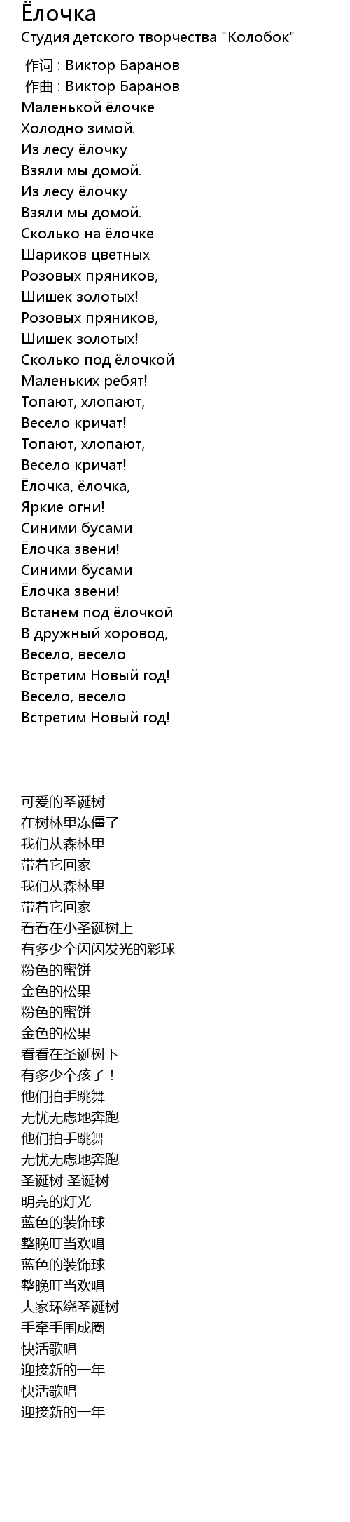 | 歌曲 | Ёлочка |