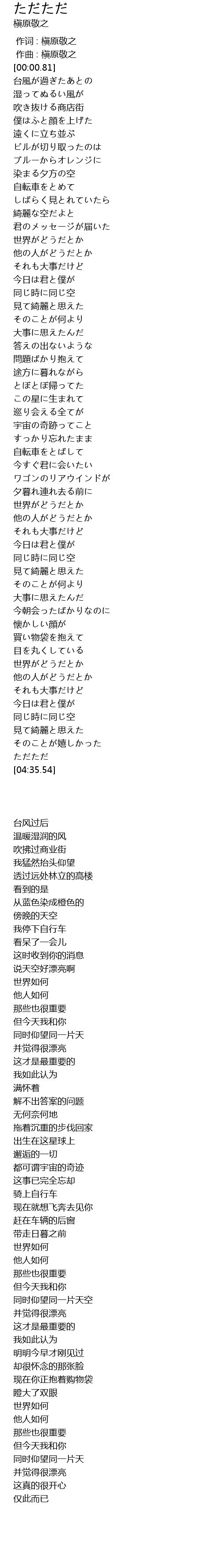 | [00:00.040] | 作曲 : 槇原敬之 |