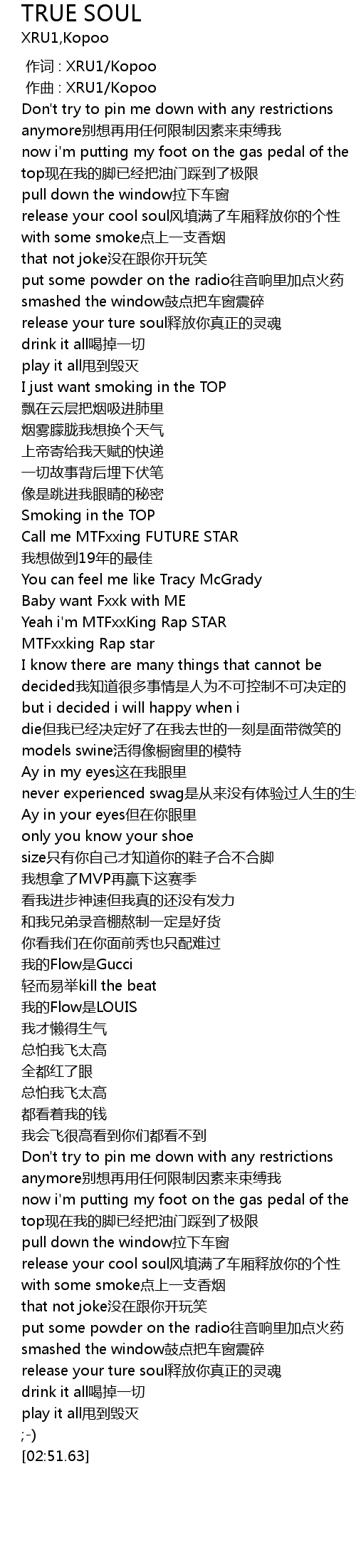 | [02:39.26] | release your ture soul释放你真正的灵魂 |