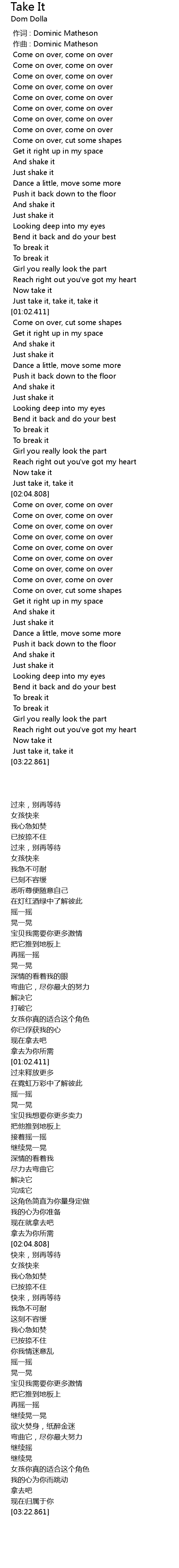 | [01:00.177] | Just take it, take it, take it |