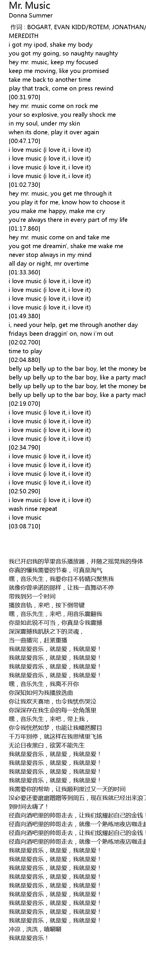 | [01:02.940] | 嘿,音乐先生,我离不开你 |