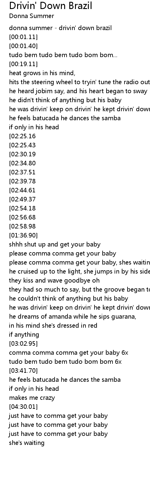he was drivin' keep on drivin' he kept drivin' down brazil |