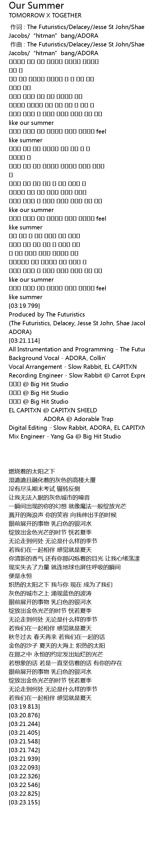 | [03:20.876] | (The Futuristics, Delacey, Jesse St John, Shae Jacobs, "hitman"bang, ADORA) |