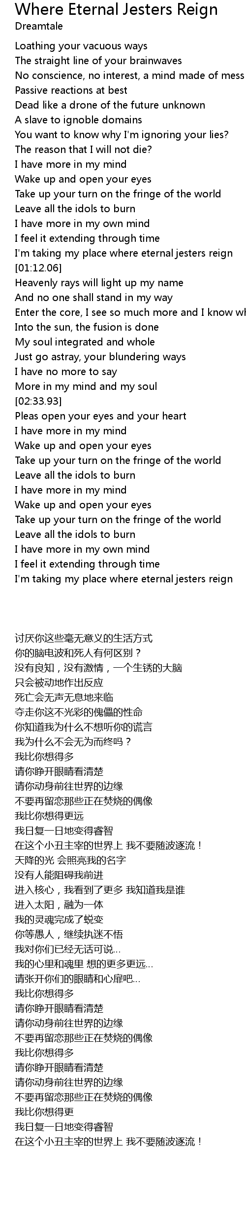 I'm taking my place where eternal jesters reign |