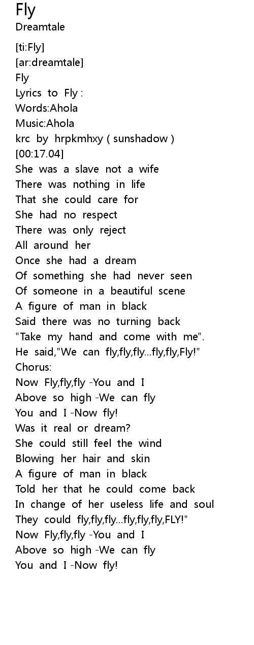 | [02:59.71] | They could fly,fly,fly...fly,fly,fly,FLY!" |