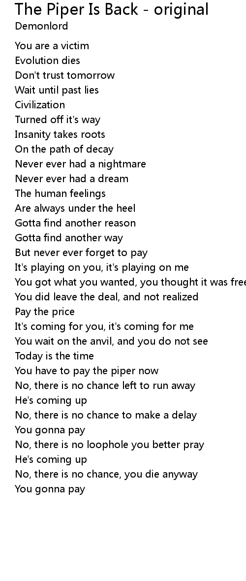 The Piper Is Back - original 歌词