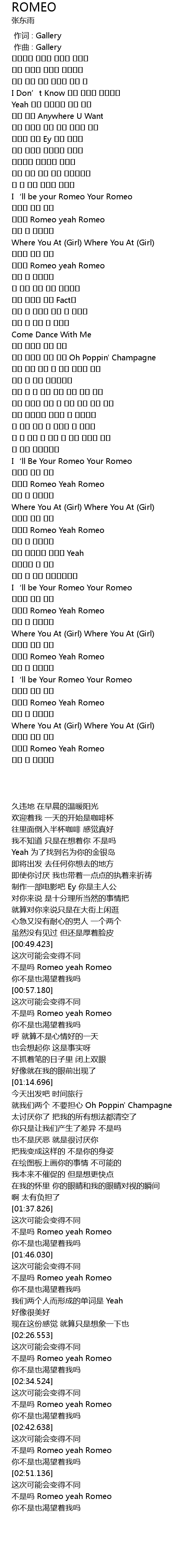 | [01:41.665] | 不是吗 Romeo yeah Romeo |