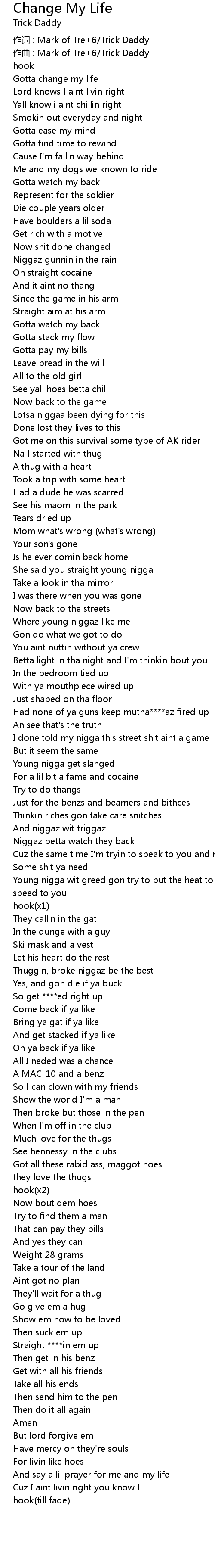 | 作词 : Mark of Tre+6/Trick Daddy | |