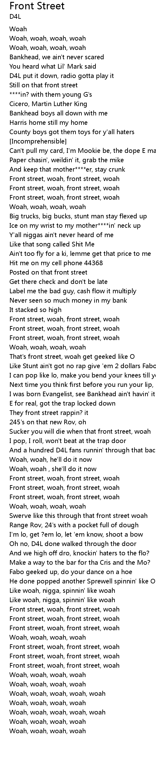 Front street, woah, front street, woah