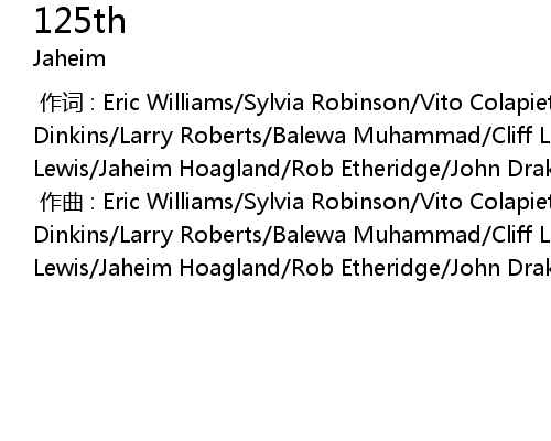 | [00:00.000] | 作曲 : Eric Williams/Sylvia Robinson/Vito Colapietro/Neely Dinkins/Larry Roberts/Balewa Muhammad/Cliff Lighty/Wesley Hogges/Melvin Lewis/Jaheim Hoagland/Rob Etheridge/John Drakeford |