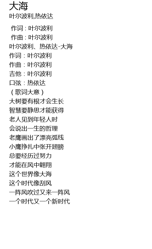 | [00:00.65] | 叶尔波利、热依达-大海 |