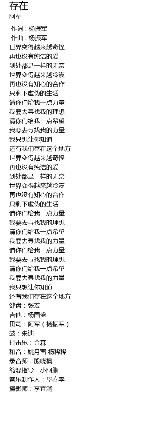 | [03:01.58] | 贝司:阿军(杨振军) |