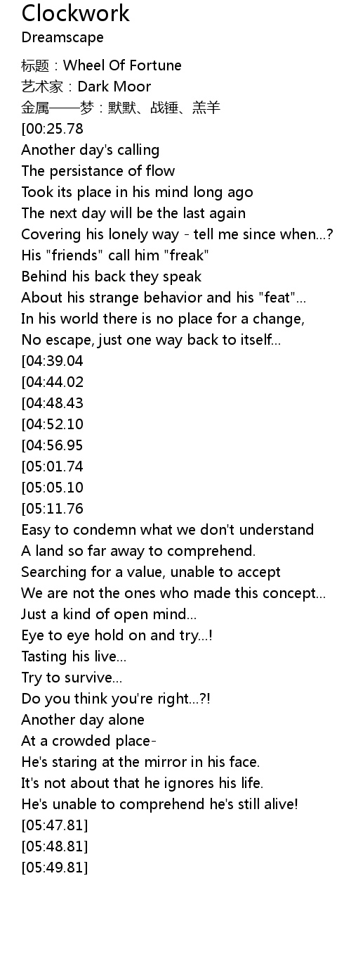 | [00:00.00] | 标题:Wheel Of Fortune |