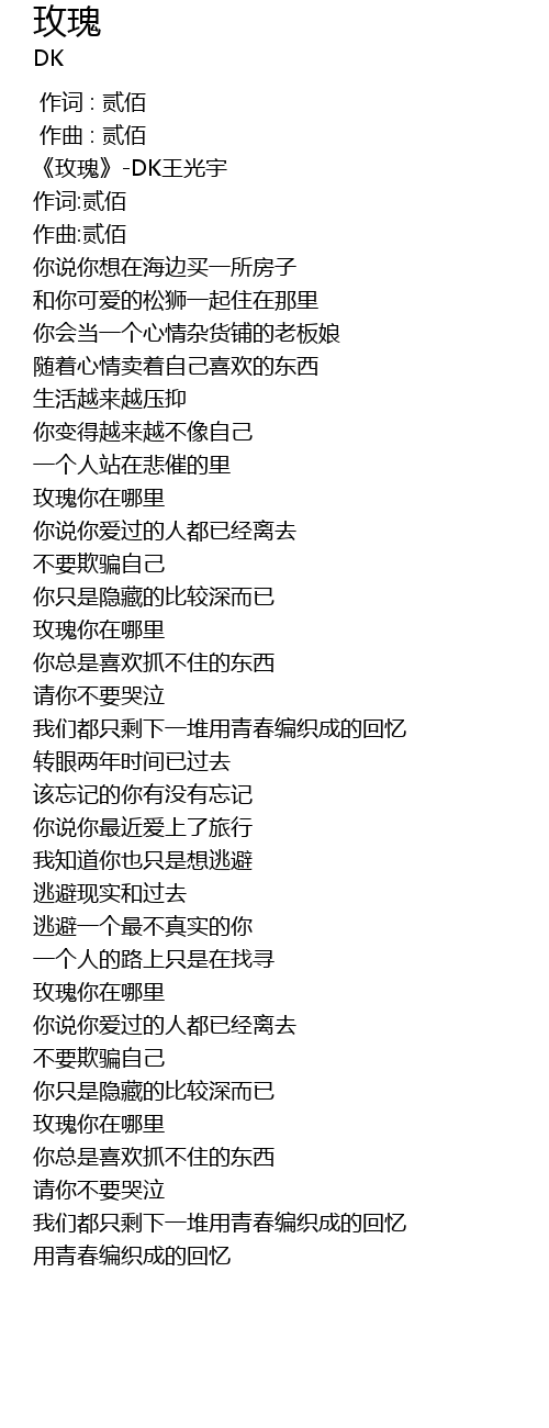 | [00:04.205] | 《玫瑰》-DK王光宇 |