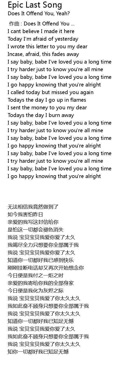 | [00:00.00] | 作曲 : Does It Offend You ... |