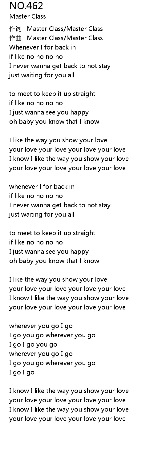 | 作词 : Master Class/Master Class | |