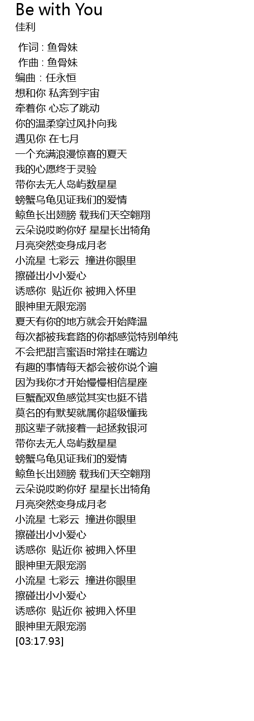 | [00:00.000] | 作词 : 鱼骨妹 |