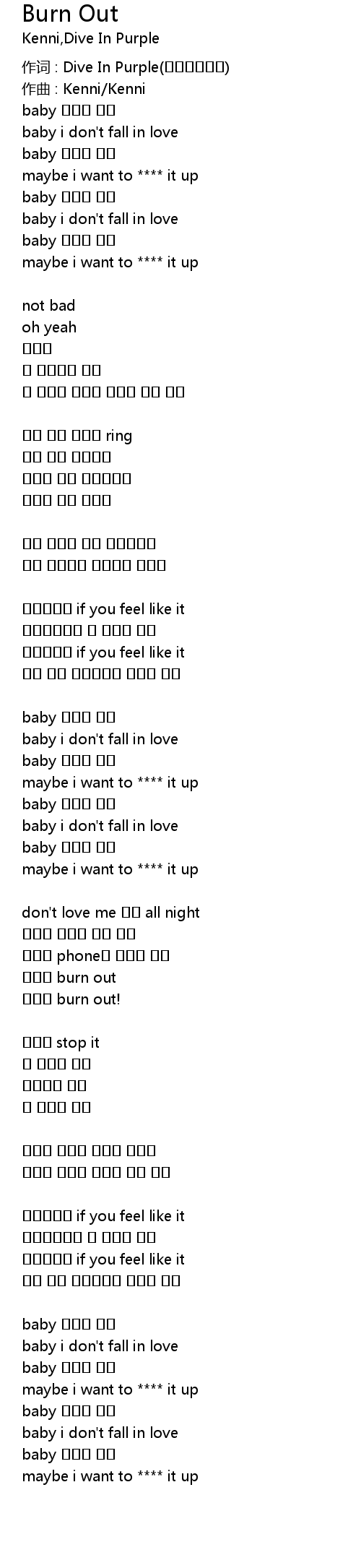 | 歌曲 | Burn Out |
