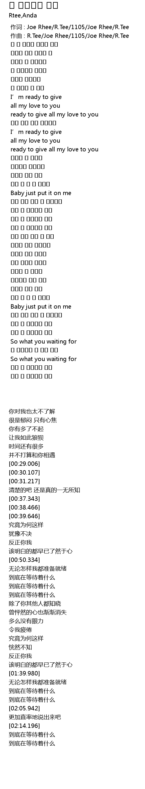 | [00:00.000] | 作词 : Joe Rhee/R.Tee/1105/Joe Rhee/R.Tee |