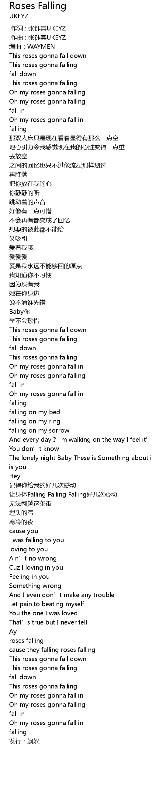 | [00:36.43] | Oh my roses gonna falling |