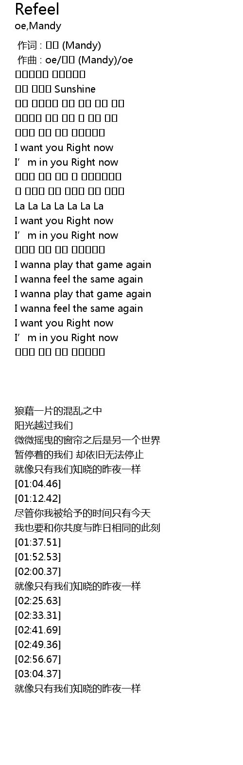 | [01:04.46] | I want you Right now |