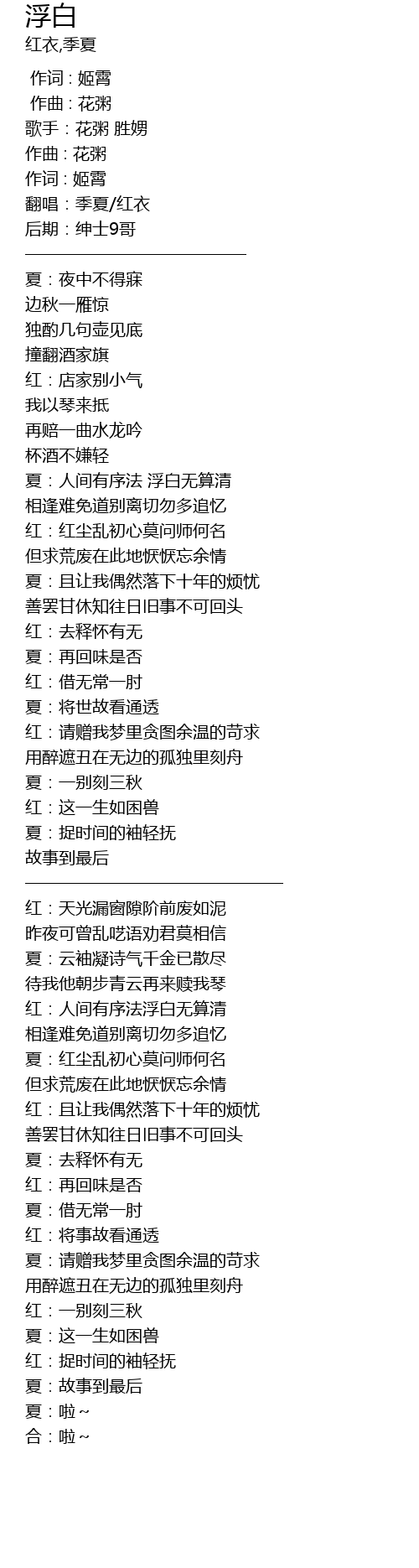 | [00:12.276] | 翻唱:季夏/红衣 |