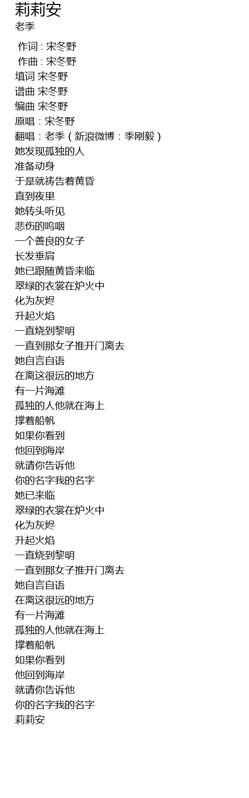 | [00:16.442] | 翻唱:老季(新浪微博:季刚毅) |